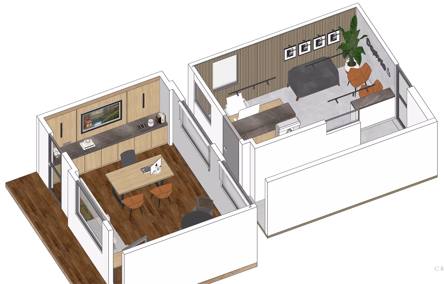 En Daphnia diseñamos la recepción y la oficina de gerencia con un objetivo claro: que cada espacio reflejara la esencia y la identidad de la empresa.Tanto en la oficina como en la recepción utilizamos los mismos materiales, destacamos los elementos que representan a la marca y, sobre todo, cuidamos cada detalle para que los espacios fueran funcionales, coherentes y con intención.